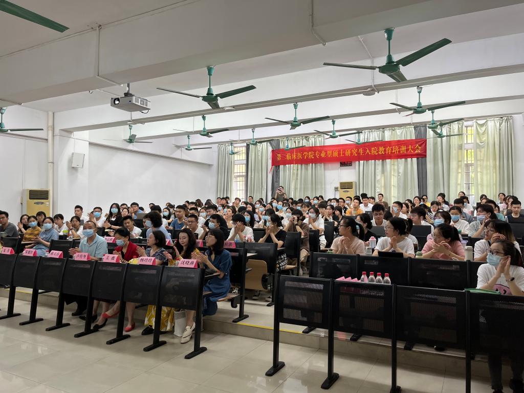 2022年8月21日上午08:30分,Bwin必赢中国官网在三元里校区综教楼102教室召开了2022级专业型硕士入院教育培训大会,出席本次大会的有:医院领导卢传坚副院长和陈大伟副院长,教务处吴薇处长、杨薇薇、黄亮老师,学生工作办公室朱旭红主任、沈晓燕、梁桂洪老师以及培训会的主讲老师夏萍主任、王伟荣副处长、杨玲玲、黄俊彬、何志鹏、柯晓霞、冯文轩、黄家杰等老师;2022级专硕研究生约200名同学参加了培训。