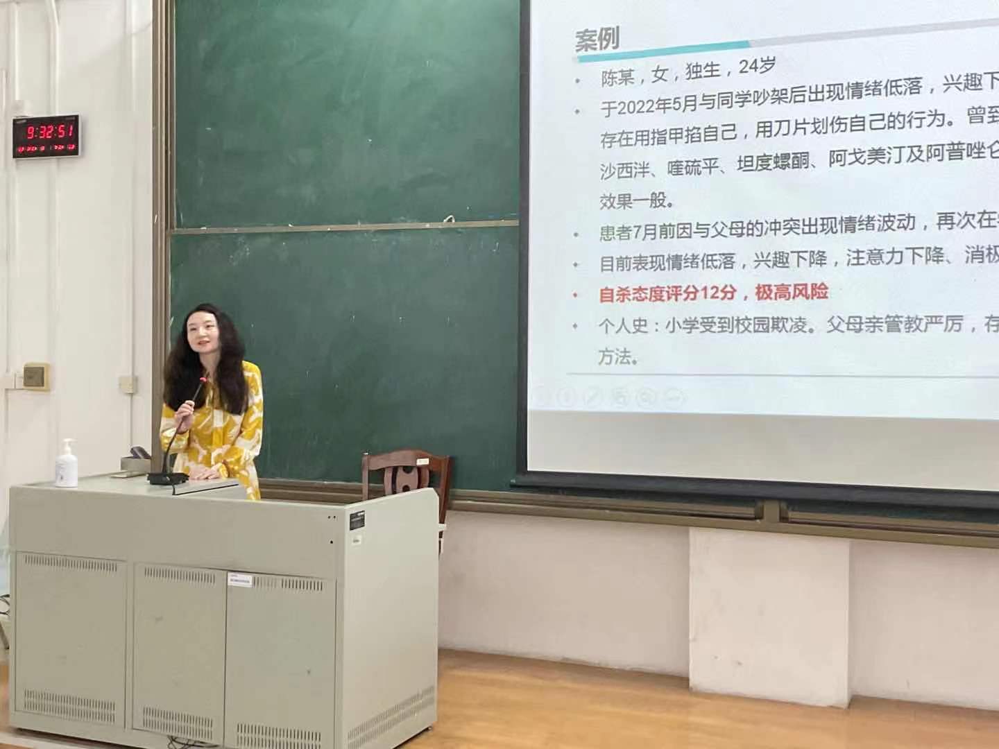 杨玲玲老师站在心理学角度,告诉大家焦虑、担心、害怕的心理其实是普遍存在的;也向大家介绍目前身心共病情况也是常见的,大家只需放松心态,相信大家作为医学生,本身就能有发现、调控、干预和处理的能力。随后介绍了抑郁等情志病的症状,最后向同学们强调,要正确了解自己的心理健康,也要关注自己身边同学的心理健康,心理问题需要大家共同关注。
