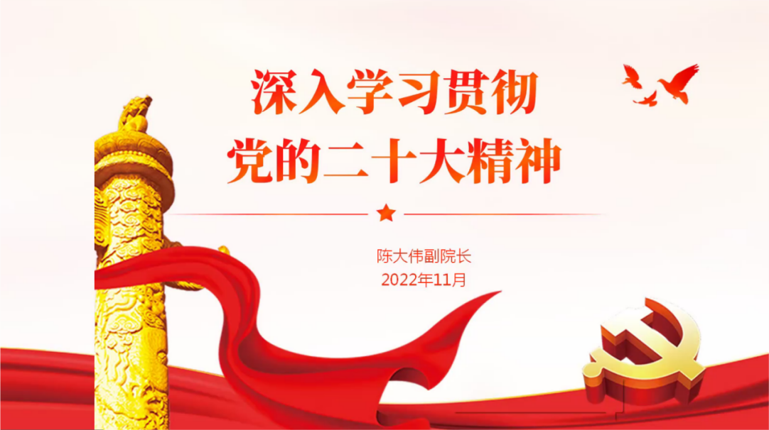 会议的最后,陈院长鼓励希望每一位同学立志做有理想、敢担当、能吃苦、肯奋斗的新时代好青年,让青春在全面建设社会主义现代化国家的火热实践中绽放绚丽之花。此次党的二十大精神宣讲会在同学们对陈院长表示衷心感谢中圆满结束。