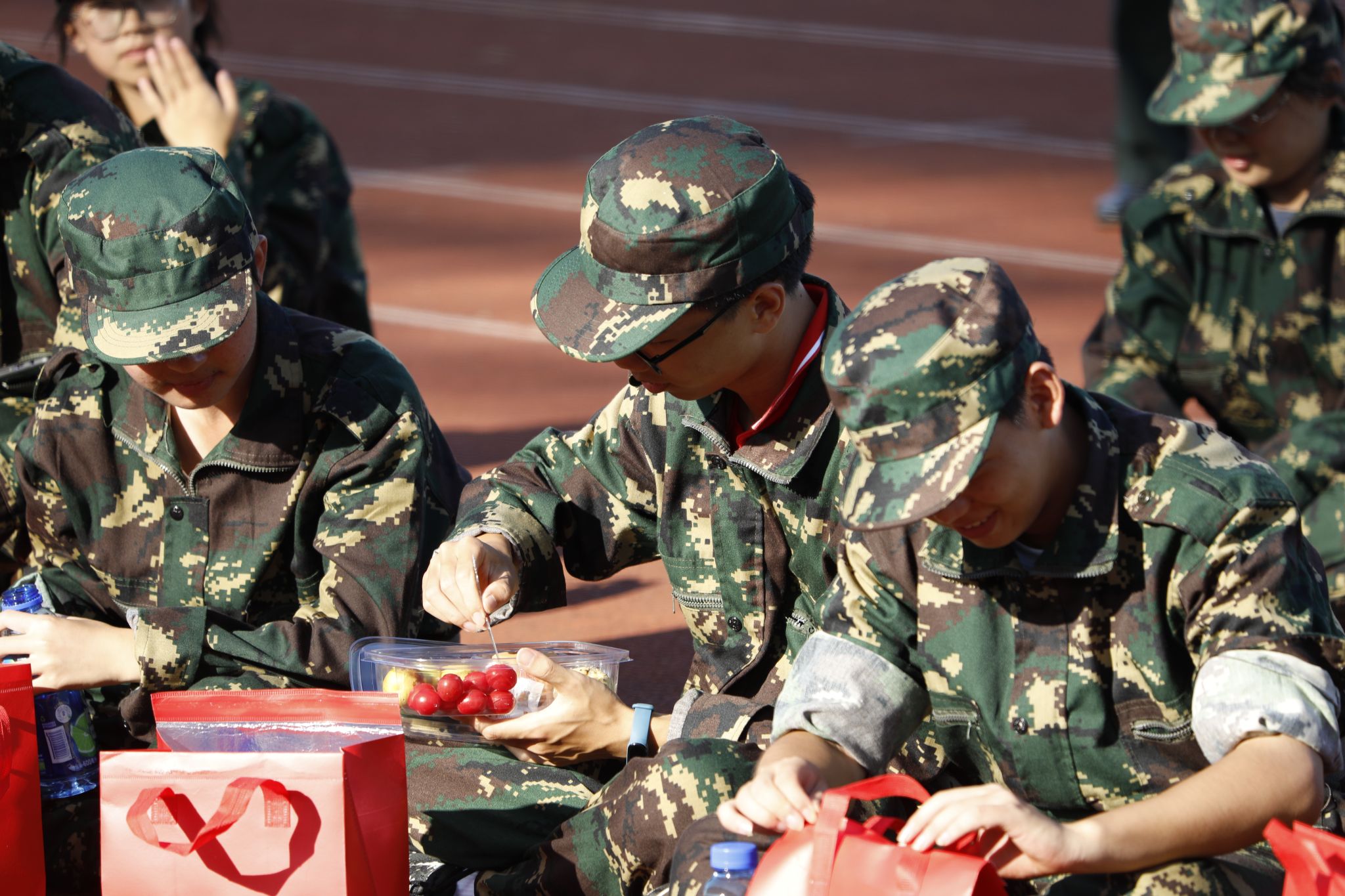 随后,学院领导、老师们为每一位军训新生发放了精心准备的军训补给包。小小的红袋,装着医院饭堂配置的点心、水果和饮料,为新生们带来一份甜蜜、一份欣喜。