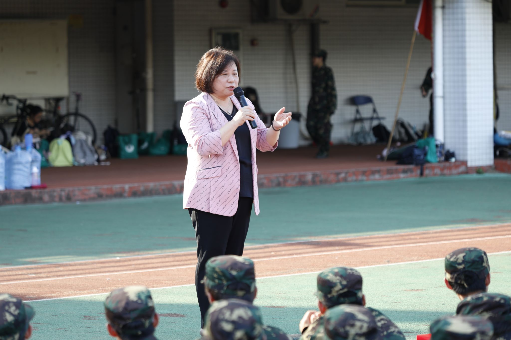 史俏蓉书记代表学院向辛苦训练的新生们表达了深切的关心与问候,并对带训教官的辛勤付出与严格指导表示了衷心的感谢。史书记指出,军训是进入大学的第一课,是大学培养方案中的必修课,更是一门爱国主义、集体主义教育的思政课;军训不仅能够增强国防观念、集体意识、团结协作意识,而且能够磨练心性,帮助同学们实现自我超越;希望同学们以更坚定的信心、顽强的意志与勇往直前的气势,圆满完成军训任务。史书记强调,今年恰逢广东省中医院建院90周年华诞,同学们迎来了中医药传承创新腾飞发展的良好时机,依托学院强劲的临床实力、雄厚的科研平台、强大的师资力量、突出的专业建设和创新的素质教育,新一代二院人更应当举起中医药文化大旗,为弘扬中华民族优秀传统文化,推动中医药事业传承创新发展而努力拼搏奋斗。史书记强调,我们不仅要弘扬“上医医国,先觉觉民”,还要坚守“厚德博学,精诚济世”的校训,始终甘于奉献,大爱无疆。最后,史书记勉励大家,在大学时光里,奋斗才是最靓丽的色彩,同学们需要在青春的赛道上奋力奔跑,收获知识,为中医药文化事业作出我们的贡献!