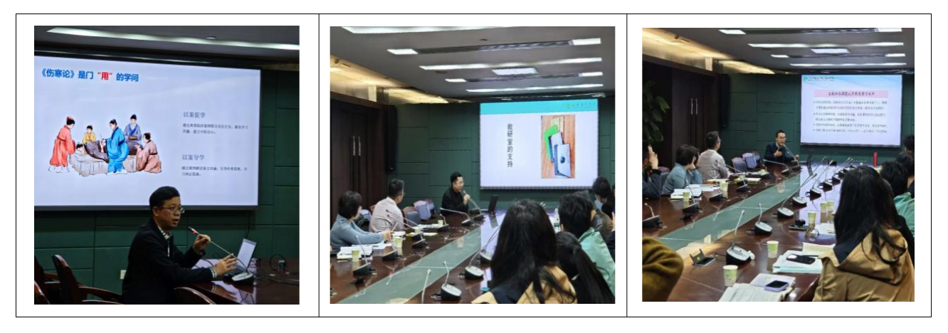 在经验分享环节,三位学生推荐的优秀教师——伤寒教研室的颜芳主任、温病教研室的杨时鸿老师、金匮教研室的吴皓萌老师,分别分享了他们在教学过程中的心得与体会。