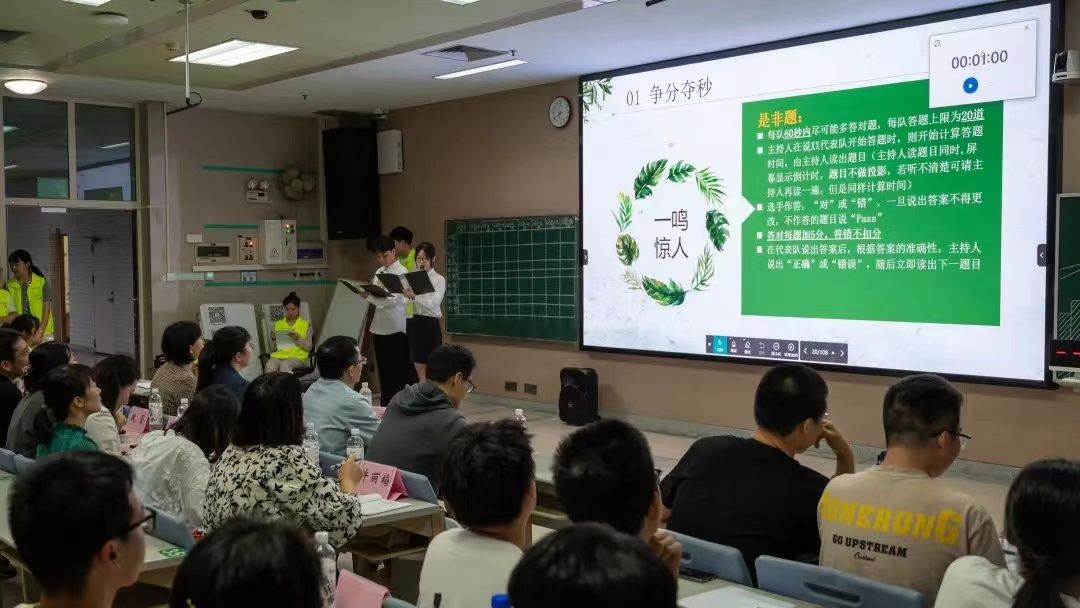 比赛间隙是观众抢答“跃跃欲试”环节,在场观众积极举手抢答,展示了他们丰富的基础知识,也缓和了场上的紧张气氛。