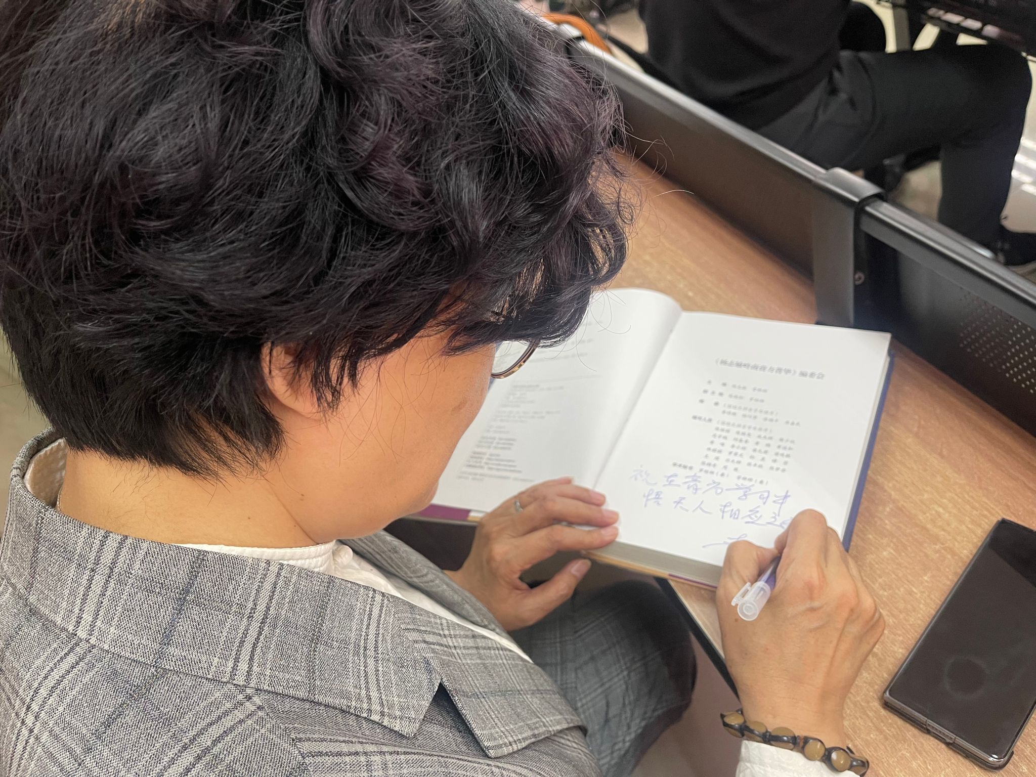 杨院长非常关心学生的学习。她认真聆听授课老师的讲课,细致观察课堂上同学们的听课情况。课间,杨院长热情地回应同学们关于中医学习的各种问题,为同学们答疑解惑,并亲笔题词勉励同学。