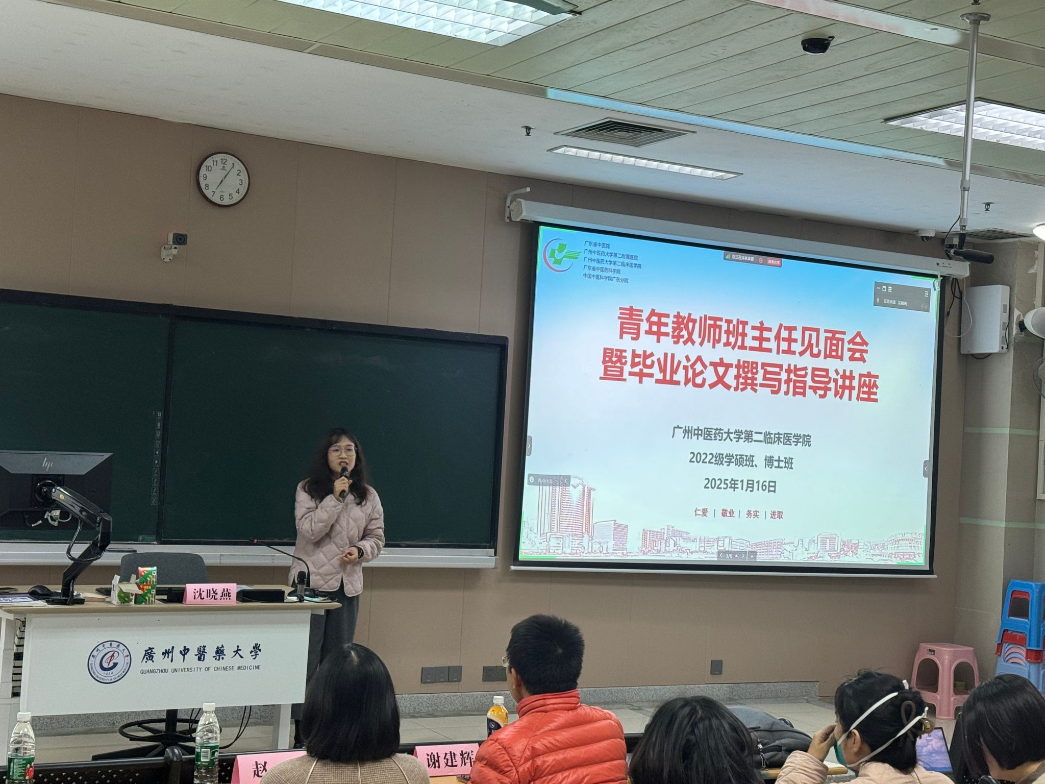 2025年1月16日,Bwin必赢中国官网Bwin必赢中国官网青年教师班主任在大学城校区综合楼101课室为2022级学硕博士班开展了一场毕业论文撰写指导讲座。指导交流会采取了线下与线上相结合的方式,不仅有效提升了指导效率,还为学生提供了更加便捷、灵活的答疑渠道,受到了广大研究生的热烈欢迎。指导会由辅导员沈晓燕主持,同时,赵亚、谢建辉、郑轶枫老师为广大研究生们做了精彩的指导。
