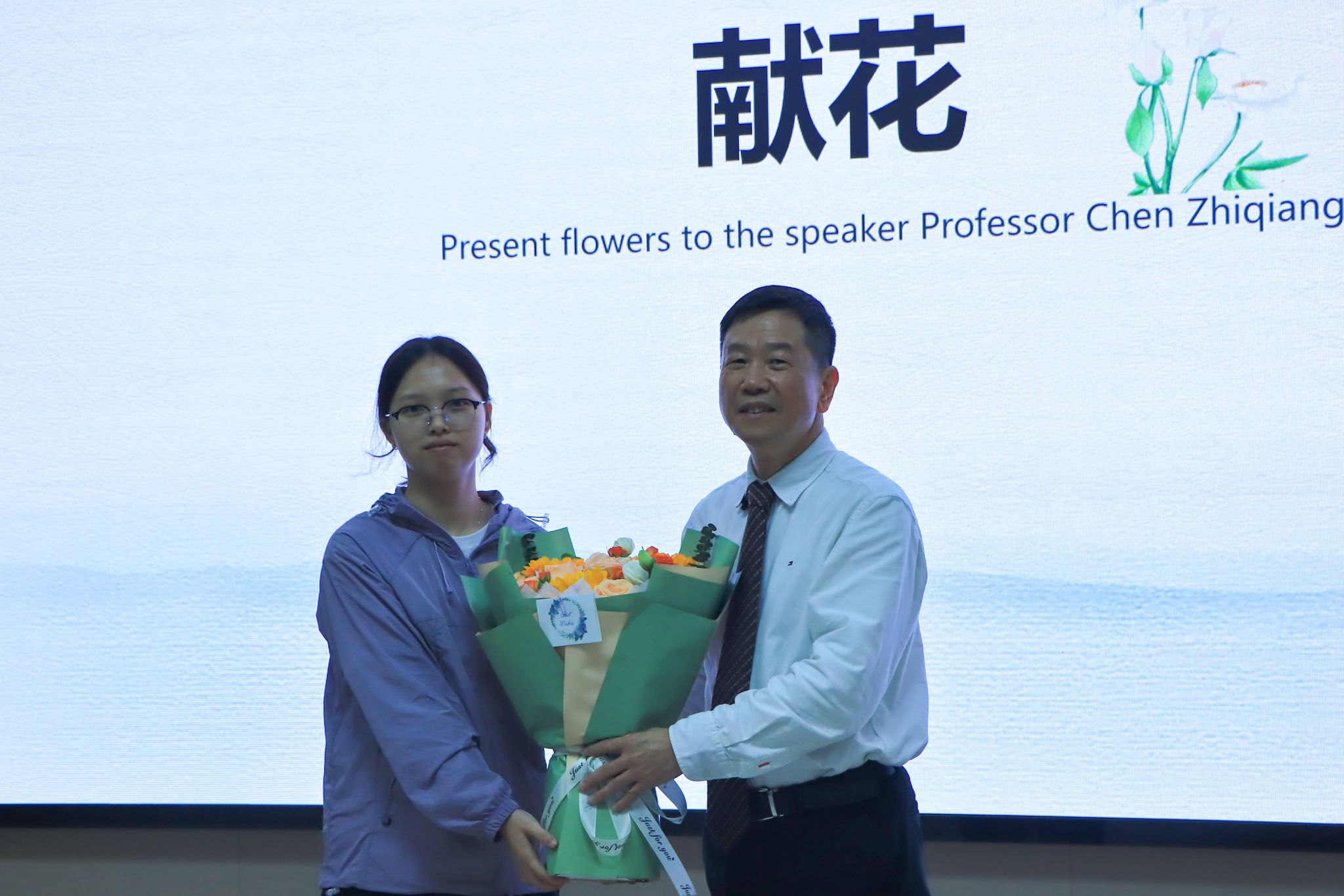 互动环节中,现场学生围绕中西医协同机制、人才培养路径等问题踊跃提问,陈志强教授逐一深入解答,令听众对 "症病同治" 的理论价值与实践意义有了更深刻认知。活动尾声,学生代表献花致敬,全体人员合影留念,在热烈掌声中圆满落幕。