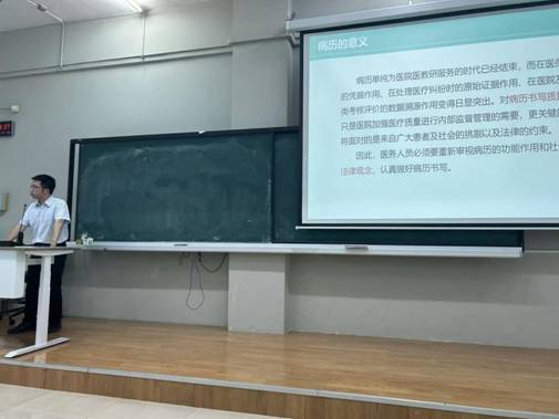 医务处张应杰老师讲解《中医病历书写基本规范》,逐项解析各类病历文书的书写要求、质控标准等。他强调,病历是重要的医疗法律文书,规范书写是临床基本功,直接反映医疗质量和医师水平。