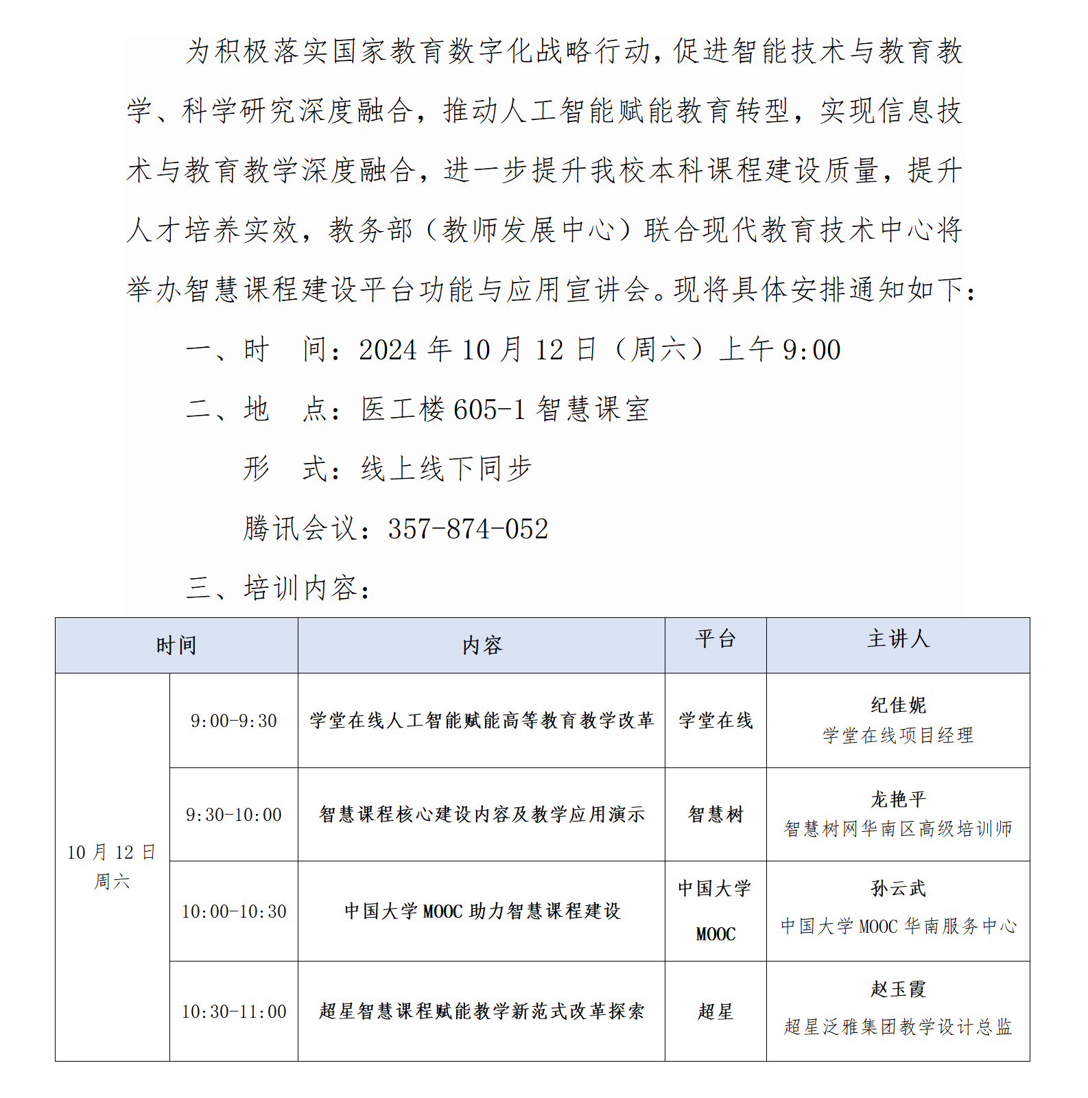 关于举办“教育技术工作坊:智慧课程建设平台功能与应用宣讲会”的通知